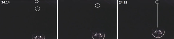 В самолете нулевой гравитации при образовании состоянии невесомости существуют промежуточные состояния малой гравитации. В этот момент предметы будут медленно опускаться вниз, при возникновении полной невесомости предмет, достигнув опоры, ударяется и резко начинает движение вверх. В самолете нулевой гравитации по этой причине тела, предметы, провода начинают плавные колебания вверх вниз. В фильме НАСА, при демонстрации сцен невесомости такие моменты тоже присутствуют. Есть сюжеты с колебанием тела «космонавта», присутствует суетливость при захвате предметов, парящих в пространстве. Актеры боялись, что они не успеют поймать предмет в состоянии невесомости, в специальном самолете. В этом случае вся сцена пойдет насмарку. При возникновении перегрузки эти предметы будут резко опускаться вниз и останутся лежать на полу кабины. В этой связи, необходимо обратить внимание на самопроизвольные колебания, например, связки проводов, которая почему-то опускалась то вверх, то вниз. В кадрах «1:02:57» и «1:02:59», когда американский космонавт брился в состоянии невесомости, эти провода без постороннего влияния начинали странные колебания то вверх то вниз. Сцена замечательна тем, что на этих кадрах показано, как солнечные лучи освещают глаза американского «космонавта». Он не боится яркого солнечного света и за свои глаза, находясь в американском «космосе». В этот же момент в иллюминаторе наблюдается яркое голубое небо.