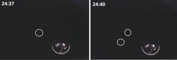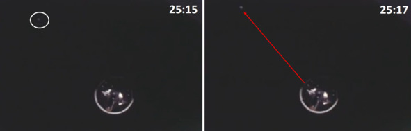 Демонстрация резкого изменения освещенности поверхности «Луны». Кадры «34:23» и «34:24». В кадре один и тот же участок «Луны», освещенность которого резко изменилось за одно мгновение. В киностудии НАСА, по всей видимости, существовала система регулировки яркости освещения глобуса Луны, макетов поверхности. Осветители резко изменили освещенность поверхности киноплощадки или «песочницы» НАСА. Поэтому резко изменилось изображение освещенности американской «Луны» в кадре «34:24». Следует отметить еще один характерный момент этих видеоматериалов, которые показали эпизоды состояния невесомости. Кадры с подобной демонстрацией отсутствия гравитации длятся не более 50—40 секунд и в фильме присутствуют очевидные следы монтажа. Одна сцена демонстрации резко прекращается, начинается другая сцена. Вероятно, что опытных специалистов по монтажу и комбинированным съемкам в тот период в системе НАСА не было.