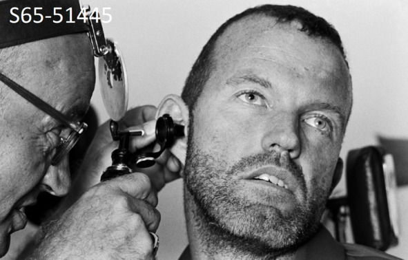 Описание фотографии: «S65—51445 (29 августа 1965 г.) – Доктор Луи П. Балленбергер, капитан, USN, начинает предварительное физическое обследование астронавта Л. Гордона Купера-младшего, командного пилота Близнецов-5, после успешного восстановления Близнецов -5 экипажа в зоне затопления в Атлантическом океане. Экипажи были подобраны вертолетом ВМФ и доставлены на главное спасательное судно, авианосец USS Lake Champlain». [8] Этот медик уже фигурировал в подобных осмотрах. Если обнаружится, что этот специалист тоже работал в концлагере смерти Бухенвальде, как и Вернер фон Браун, то удивляться не стоит. Почему американские обманщики считали, что врач «ухо, горло, нос» в первую очередь должен осмотреть «космонавта»? Этот вопрос у американских сказочников остается без ответа. Данная ситуация ничего не меняет в принципе: Медицинского осмотра сразу после приводнения в этом шоу американские сказочники не показали. Фотографии сомнительного медицинского обследования сделаны после того как прошло значительное время. Один из космонавтов даже успел помыться и побриться. Второй американский клоун, видимо, пил больше первого клоуна, и бриться поленился.