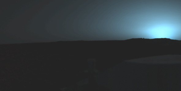 На реальном Марсе подобный закат Солнца наблюдать невозможно. Голубой ореол вокруг Солнца, на закате, возможен только на Земле. При создании этой фотографии, американские обманщики вообще прекратили использовать фильтры оранжевого цвета, которые делали «марсианское небо» США оранжевым. Фальсификаторы НАСА смело продемонстрировали голубое небо на своем американском «Марсе». Разряженная марсианская атмосфера не способна рассеивать солнечный свет подобным образом, чтобы небо стало на Марсе голубым.