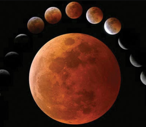 При этом необходимо понимать, что световые волны «зеленого» цвета, где длина световой волны находится в пределах 500—565 нм, частично поглощаются атмосферой. Световые волны с длиной волны от 380 нм до 500 нм, это голубой, синий, фиолетовый цвета, могут сильно рассеиваться в атмосфере и не дойти до наблюдателя. Видимо по этой причине, лунные моря в момент лунного затмения и при обычном освещении выглядят, как темные пятна. Это означает, что цвет лунных морей отличается от цвета остальной поверхности Луны. Освещена Луна в этом случае сначала в режиме полутени, а потом в результате преломления световых лучей в атмосфере Земле она становится красной: «Дело в том, что солнечный свет преломляется в земной атмосфере и, таким образом, частично попадает на затененную поверхность Луны. Для наблюдателя на Луне это должно выглядеть, как красноватое свечение, окружающее Землю. Голубая часть солнечного спектра сильнее рассеивается в земной атмосфере, чем красные лучи, и поэтому на Луну попадает в основном излучение красной части спектра». [9] На фотографиях АМС «Зонд-7» Луна имеет тоже темно оранжевый цвет.
