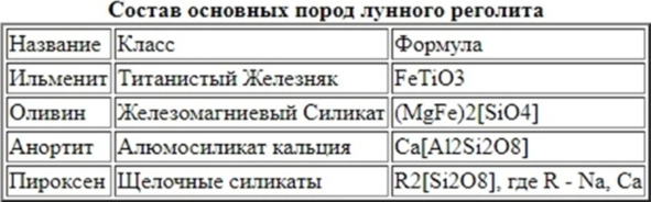 Если оливин, например, будет составлять 25—30% от общего количества смеси, реголита, то смесь будет иметь зеленоватый оттенок. Фиолетовый ильменит даст фиолетовый цвет, который наблюдается в одном известном образце советского, лунного грунта. Анортит даст розовый, красный, желтый цвета.