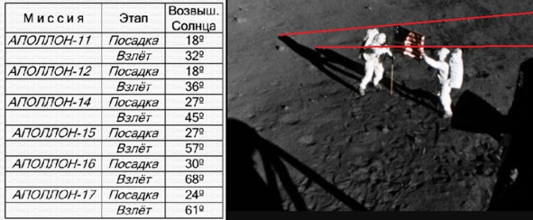 Самым важным моментом книги Рене, наверное, необходимо признать его попытку исследовать защиту от радиации у «космических аппаратов» из программы «Аполлон». Здесь все было прекрасно: никакой защиты от солнечных вспышек у американцев не было. Этот факт признавали сами фальсификаторы. Рене составил таблицу возникновения солнечных вспышек с период осуществления «лунных полетов». Из этой таблицы следует, что американским «космонавтам невероятно повезло!