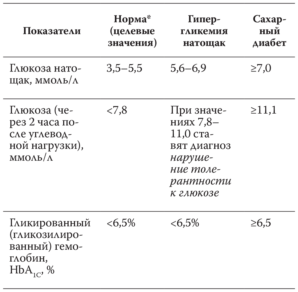 * Нормы приводятся для глюкозы плазмы, полученной при взятии крови из вены.