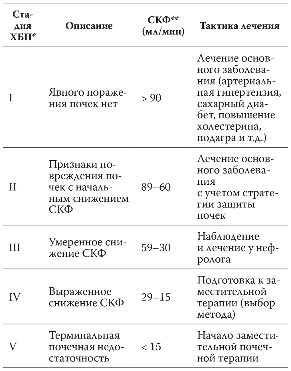 * ХБП – хроническая болезнь почек, ** СКФ – скорость клубочковой фильтрации.