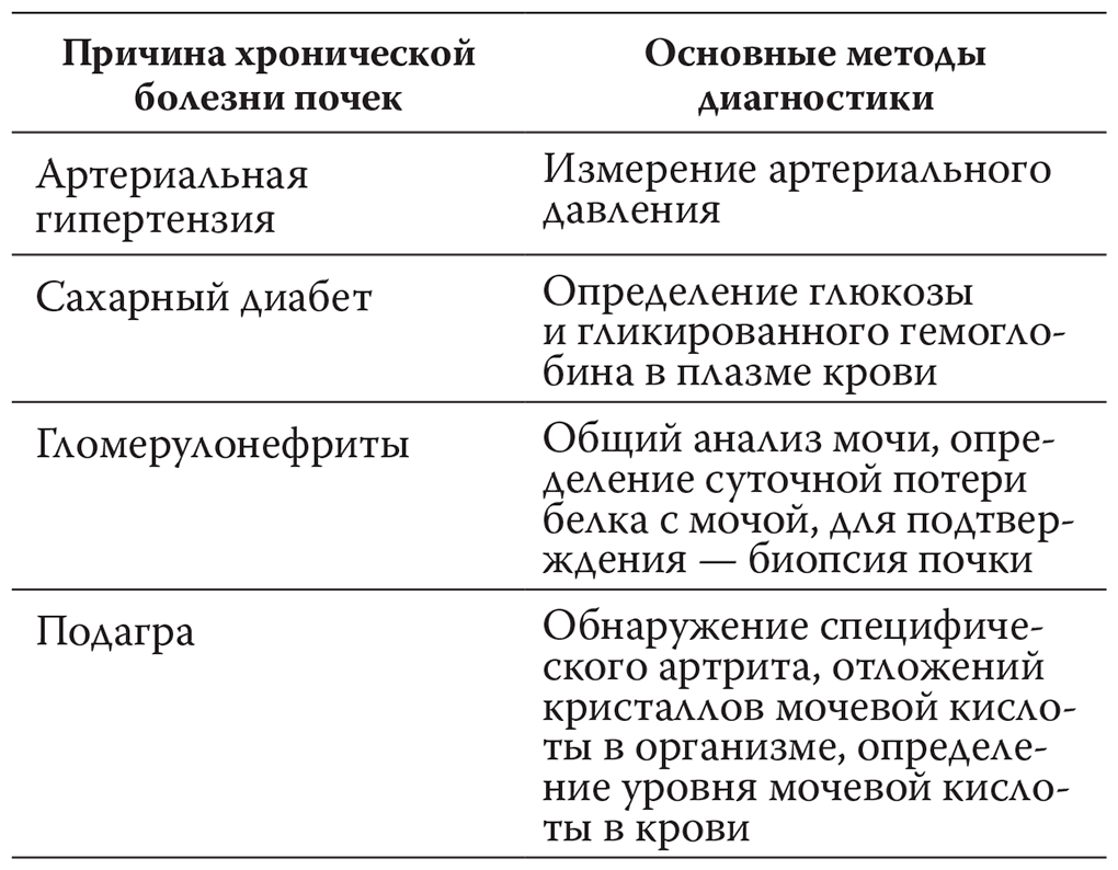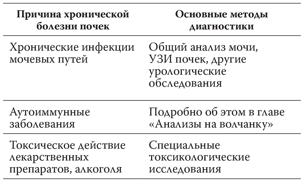 Итак, анализ на креатинин и расчет скорости клубочковой фильтрации дают нам очень важную информацию о том, есть ли нарушение выделительной функции почек, но они совершенно не говорят о том, почему это нарушение произошло. Разумеется, подчас диагностика бывает очень сложной, и я совершенно не претендую на создание исчерпывающего справочника по заболеваниям почек, тем не менее давайте сделаем перечень основных причин заболеваний почек и методов их диагностики.