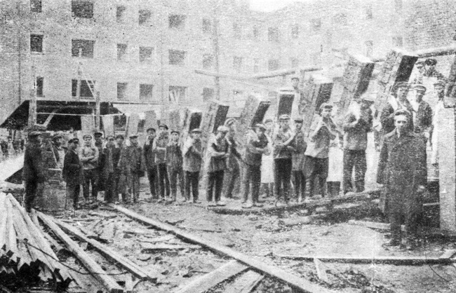 Отряд «козоносцев» на стройке. Середина 20-х гг. XX века