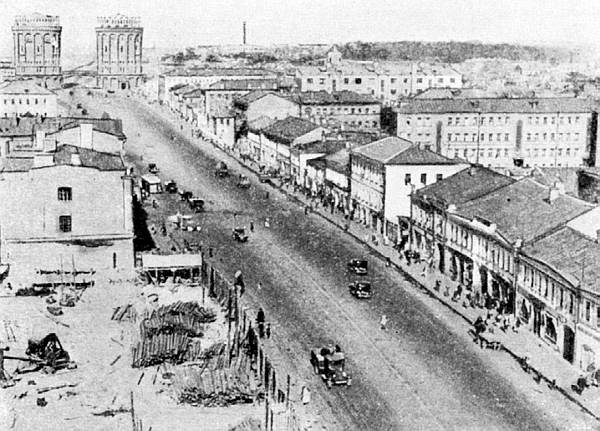 Планомерную борьбу приходилось вести и с особо безобразными элементами улиц московского центра – брандмауэрами. Средством преодоления разновысотного беспорядка должны были стать надстройки капитальных, но низких домов, которым следовало подравняться под своих многоэтажных соседей. Специально для этих работ возник трест «Моснадстрой», на который была возложена ответственная задача – оформление и реконструкция главных улиц центра города. Июньский 1931 года пленум ЦК ВКП(б), намечая программу социалистической реконструкции Москвы, решил сконцентрировать усилия строителей на ряде основных магистралей с целью добиться их архитектурной выразительности.