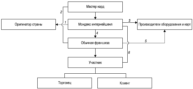 Каждый из участников расчетов, включая оригинатора, банки, предприятия торговли (услуг) и клиентов, являются держателями карт соответствующего класса, максимально допустимая сумма которых и перечень операций, которые возможно совершать с использованием этих карт, определяются правилами оригинатора. Правила взаимодействия карт в зоне ответственности оригинатора каждой валюты устанавливаются управляющим органом оригинатора в соответствии с требованиями национального законодательства (рис. 7).