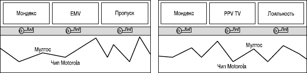 Многофункциональная операционная система MULTOS позволяет независимым компаниям производить разработку собственных приложений, исключающих неавторизованный доступ одного приложения к другому. Эта система позволит реализовать на одной карте совмещение нескольких функций, таких, как страховой полис, удостоверение личности, пропуск, доступ к платному телевидению, в Интернет, различные схемы отношений с банком (как, например, кредит, отложенный дебет и др.), т. е. области применения карт могут быть неограничены.