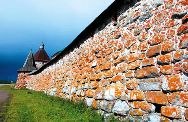 Кроме того, некоторые стыки блоков, например на набережной, выполнены в технике полигональной кладки, когда камни плотно укладываются друг к другу, образуя взаимозацепление «в замок», обеспечивающее прочность конструкции, характерное для древнейших сооружений Египта, Мексики, Перу [2]. Огромные валуны, положенные в основание стен и башен Спасо-Преображенского монастыря на Большом Соловецком острове, покрыты накипными лишайниками. Судя по размерам отдельных особей лишайников и высокому проективному покрытию[9], этим строениям более двух-трех тысяч лет [1,3].