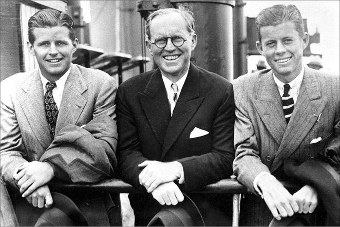Джон Кеннеди (справа) со старшим братом (слева) и отцом в 1938 г.