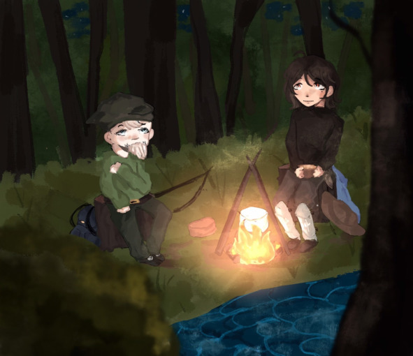 На огне в котелке готовилась похлебка. Гном и Айхи продолжали начатый при встрече разговор…