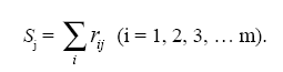 Обозначим через m общее число экспертов, оценивающих хотя бы одно направление. rij – это ранг, назначенный j-направлению (j = 1, 2, 3, …, n; n – число исследуемых направлений) в соответствии с весом, данным i-экспертом (i = 1, 2, 3, …, m; m – число экспертов). При ранжировании по убыванию весов ранг будет меняться от 1 до n. Вес фактора эксперт оценивает по десятибалльной системе. Если среди весов, данных ¡-экспертом ¡-направлению, есть одинаковые, то им назначается ранг (важность), равный среднеарифметическому. Тогда в соответствии с методами ранговой корреляции вводится показатель важности – сумма рангов: