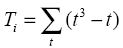Величина Ті – показатель связанных (равных) рангов, зависимый от количества t равных весов, назначенных i-экспертом: