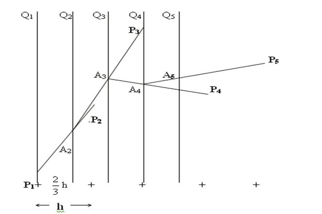2. Построим ряд ординат Q1, Q2, …, Qn на расстоянии 2/3 h, при этом Q1 проходит через Р1.