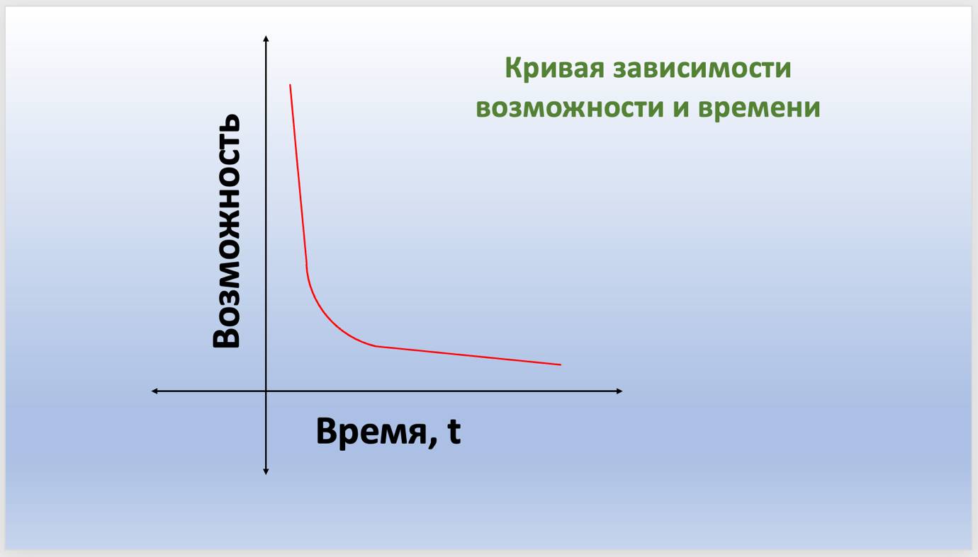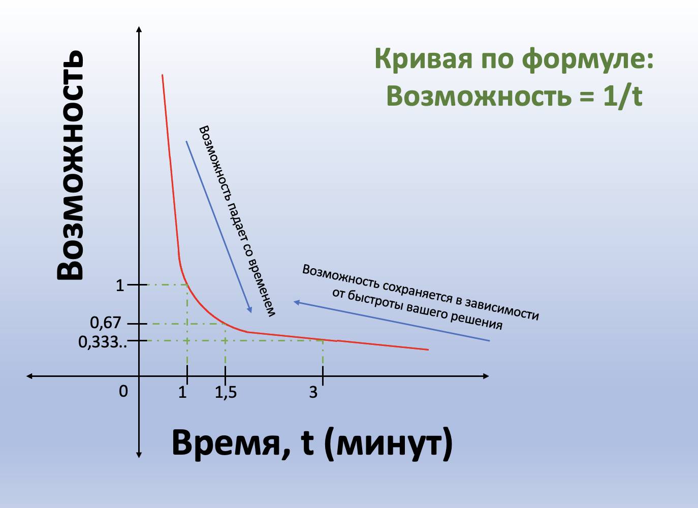Другими словами, чем больше времени ты решаешься на действие, тем меньше вероятность того, что ты получишь свою возможность.