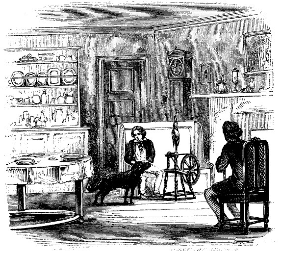 Marco and Forester went into the house, and were ushered into a large room, which seemed to be both sitting-room and kitchen. A large round table was set in the middle of the floor, for supper. A monstrous dog was lying under it, with his chin resting upon his paws. There was a great settle in one corner, by the side of the fire. There were chairs also, with straight backs and seats of basket-work, a spinning-wheel, an open cupboard, and various other similar objects, which, being so different from the articles of furniture which Marco had been accustomed to see in the New York parlors, attracted his attention very strongly. Marco went and took his seat upon the settle, and the dog rose and came to him. The dog gazed into his face with an earnest look of inquiry, which plainly said, "Who are you?" while Marco patted him on the head, thereby answering as plainly, "A friend." The dog, perfectly understanding the answer, seemed satisfied, and, turning away, went back to his place again under the table.