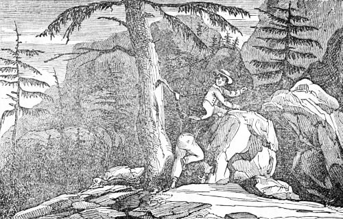 He and James had each a book to put their blue-bells in. They walked along, talking about their flowers, until at length they reached the bridge. Just beyond it was the rocky precipice, with shrubs and evergreens growing upon the shelves and in the crevices, and spaces between the rocks. It towered up pretty high above the road, and the declivity extended also down to the brook below the bridge, forming one side of the deep ravine across which the bridge was built. There was a very large, old hemlock-tree growing upon a small piece of level ground between the ravine and the higher part of the precipice. Under this hemlock-tree was a large, smooth, flat stone, where the boys used very often to come and sit, when they came to play among these rocks.