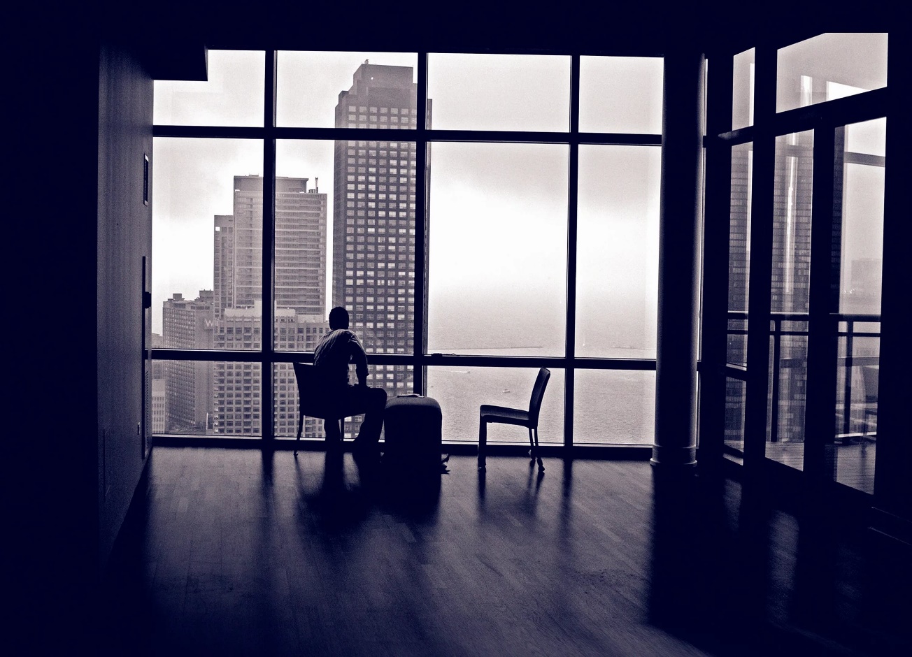 Девушка в очередной раз, уже в конце рабочего дня, зашла к Новаку проверить, проснулся ли он. Когда она зашла, он сидел на столе, поставив ноги на кресло, и смотрел в окно.