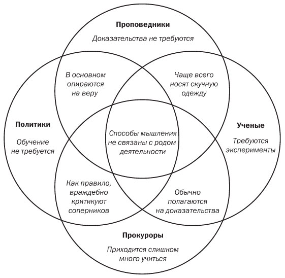 В остальных перечисленных режимах мышления это невозможно. Для проповедника изменение взглядов – признак легкомыслия, а для ученого – свидетельство интеллектуальной работы. Для прокурора согласиться с чужим мнением означает признать свое поражение, а для ученого это шаг к истине. Политик меняет курс, как ослик, бегущий за морковкой, а ученый – под влиянием логики и фактов.