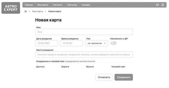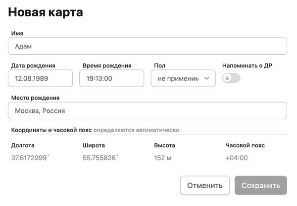 • «Дата рождения» – указываете свою дату рождения или человека, на которого вы составляете карту.