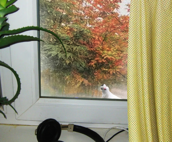 Я уж хотел закрывать ноут, хорошего понемножку, как за окном услышал посвистывание крыльев и скрежет коготков по подоконнику. Привстал и увидел любопытную головку белого голубя. Надо ли говорить о черном пятнышке на хохолке?))