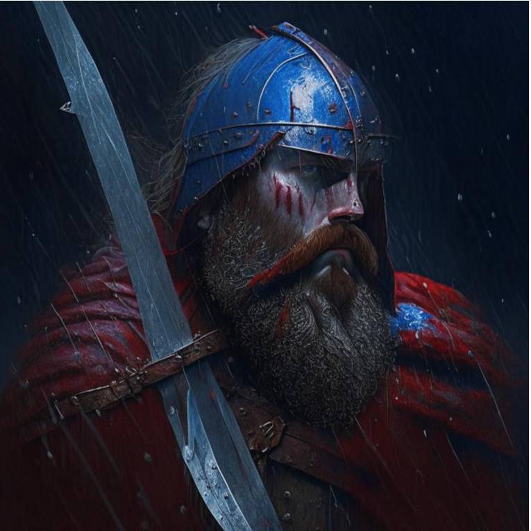 Он стоял долго; намокла шерсть плаща, рубаха под ним, плечи. Кривая дорога тянулась в тёмное небо по бескрайней болотистой равнине, где застыли по одиночке, словно скоморохи в пляске, голые кривые деревья. Он услышал тяжёлый гул, оглянулся. Они появились оттуда, где уже стемнело. Длинная колонна с копьями на плечах. Впереди горел, стрелял искрами факел, ещё один, далеко-далеко в хвосте колонны, то появлялся во тьме, то пропадал. Шедший впереди воин – в длинном намокшем красном плаще, со светло-русой бородой, в остроконечном шлеме, с овальным щитом на спине, топором в кожаном чехле на правом боку, мечом в бордовых, потемневших от влаги ножнах вышел к нему на обочину. С подбородка хвостиком свисала его мокрая борода. Всё лицо было синее от узоров татуировки, только вокруг губ чистая белая кожа – целовать маму и его, – это был отец. Отец снял с правой руки кольчужную рукавицу, плетёную из мелких колечек, стянул кожаную перчатку, будто узором, украшенную насечками влаги по сухой коже и провёл по его волосам, освобождая голову от капюшона. Под мерное чавканье грязи под сапогами воинов, они смотрели в глаза друг другу: