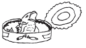 2 банки рыбных консервов, 2 яйца, 2 соленых огурца, рис, специи.