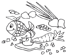 200 г рыбы, 150 г картофеля, 100 г огурцов свежих, 100 г помидоров, 100 г капусты цветной, 50 г горошка зеленого, 50 г моркови, 200 г майонеза, 10 г соуса «Южный».