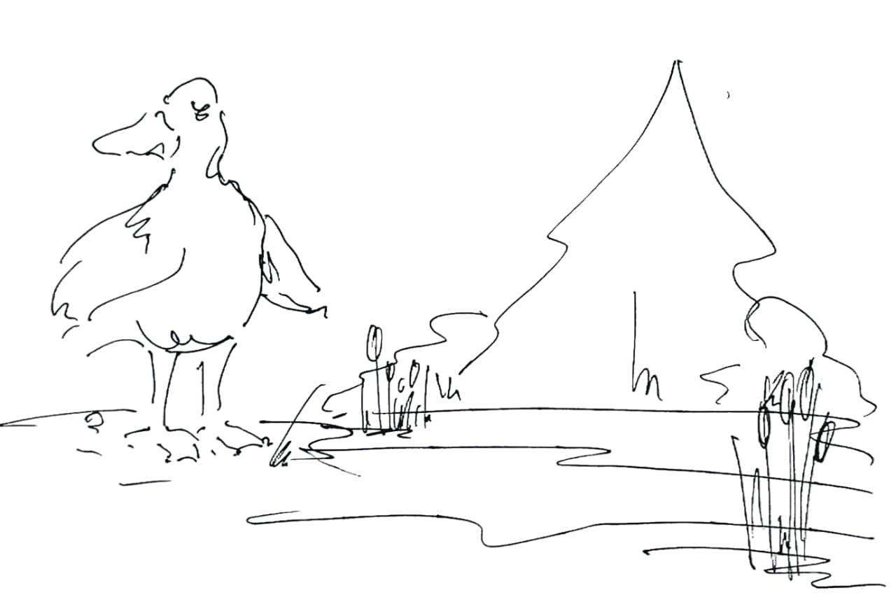 – Сегодня днём, после утомительной процедуры чистки пёрышек, я решила немного вздремнуть. Ничто так не расслабляет, как послеобеденный сон! К тому же он очень полезен для здоровья пожилых важных уток: можно не думать о смысле жизни и других умных вещах, о которых приходится беспокоится дни напролёт. Всё-таки, возраст и положение обязывают… – рассуждала утка вслух, направляясь к озеру, где предполагала вздремнуть. Однако, едва ступив в воду, она почувствовала, как земля уходит из-под ног. Затем раздался жуткий визг, и утка, не удержавшись, шлёпнулась на зад и по мокрой глине съехала к воде.
