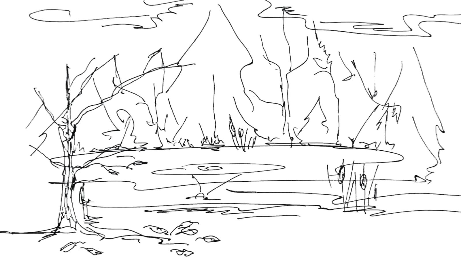 Лесная тропинка шла к озеру, и дальше к знакомым ёлкам. Но едва ступив на берег, девочка услышала странный шум, и поспешила на звук.