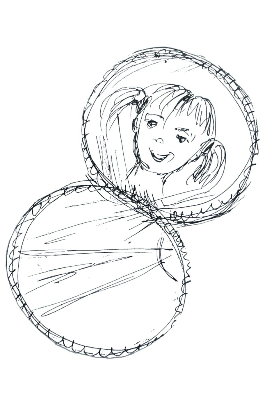 Я даже расстроилась и тут вспомнила про зеркальце: мне стало интересно, какая я, когда никому до меня нет дела? Надо сказать, зеркальце появилось у девочки недавно. Впервые увидев своё отражение, она удивилась и показалась себе забавной. Оказывается, можно выглядеть очень мило, если улыбаться, например, или глупо, если разинуть рот, а можно даже страшно, если оскалить зубы.