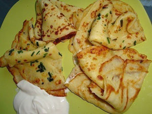 2. Начинка: рыбку измельчить (но не в кашу, а, чтобы были маленькие кусочки) + мелко нарезанная зелень укропа и зеленого лука + нарезанные кубиками яйца + специи по вкусу. Хорошо все перемешать. Начинка готова. (Я делаю такой салатик, только увеличиваю ингредиенты, очень вкусно.)