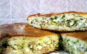 Пирог из рыбных консервов с яично-сметанной заливкой