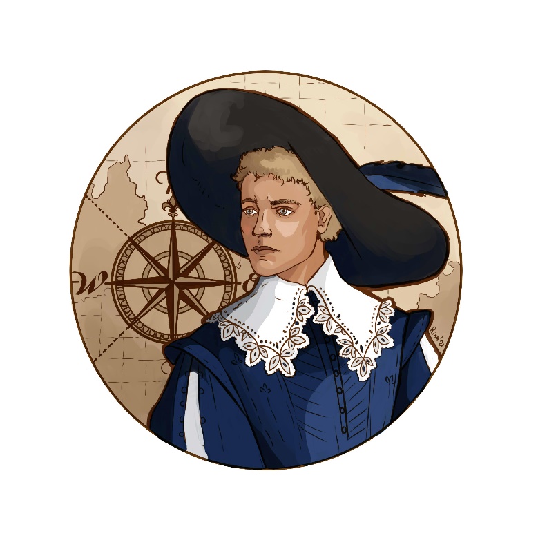 Позолоченная латунь обрамляла сверкающую серебристую гладь, в глубине которой отразилось его гладко выбритое лицо – миловидное и в то же время мужественное, обрамлённое тёмно-русыми волнами волос. Отложной белый воротничок оттенял загар, наложенный жарким карибским солнцем, а из-под широких полей шляпы пронзительно смотрели серые глаза, излучавшие спокойствие и затаённую грусть.