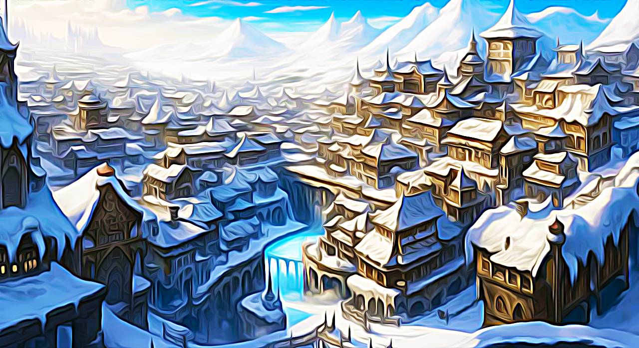 Герои расходятся. Морави с Мусагидом направляются на станцию, чтобы приобрести билеты на проезд до центра. Утром всегда полно желающих отправиться в центр на железнодорожных вагончиках по своим делам. Зиннур же отправился пешком вглубь города. Улицы были не совсем широкие, но и не узкие. Нередко по таким улицам проезжали крытые двухколесные кибитки, рассчитанные для двух пассажиров и кучера. Такие кибитки были запряжены высокими двуногими птицами с рожками и густым покровом сине-серой шерсти. Они ловко пробегали по улицам. В основном к такому виду транспорта прибегали, когда необходимо было быстро добраться из пункта «А» в пункт «Б» без всяких остановок. Правда стоимость проезда была дороже, чем у вагончиков, но за скорость перемещения местные жители готовы платить. Несмотря на то, что в этом городе снег падает всегда, на улицах всегда было чисто и не так уж завалено большими сугробами. Между домами всегда есть маленькие улочки, в которых располагались несколько металлических контейнеров, чтобы дворники убирали снег туда. Таким образом, у жителей всегда был доступ к чистому снегу, ведь они использовали талую воду для бытовых нужд.