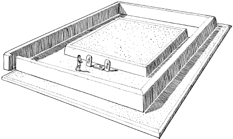 Гробницы древнейших исторических царей Египта были обнаружены в Абидосе в Верхнем Египте в 360 милях к югу от Каира. Абидос был царским некрополем южной столицы – Тиса. Погребения датируются приблизительно 3200 г. до н. э. Примерно в то же самое время на пустынном плато к западу от северной столицы – Мемфиса – возник некрополь Саккара. Один из трудных вопросов, стоящих перед египтологом, – это то, что у одного фараона было две гробницы: одна – на юге, в Абидосе, другая – на севере, в Саккаре. Умерший правитель мог быть, конечно, похоронен только в одной. Возможно, наиболее разумный ответ на этот вопрос, что гробница в Абидосе была кенотафом – пустой почетной гробницей фараона. Царские гробницы были обнаружены в обоих местах, и, хотя в деталях они различаются, основные черты те же самые. Они построены из глиняных кирпичей в форме огромного прямоугольника. Археологи называют их мастабами, поскольку по форме они напоминают кирпичные скамейки-завалинки, которые стоят у домов египетских крестьян. Под каждой мастабой находилась погребальная камера, окруженная множеством других комнат и кладовых.