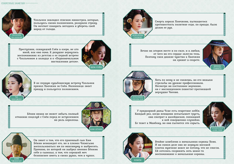 Во дворце у каждого есть секреты, которые они не могут рассказать из-за своих статуса и положения. В сериале «Королева Чхорин» авторы добавляют загадку каждому персонажу, даже если это лишь неприметная дворняжка. Тем самым зрителям предоставляют возможность испытать сюжетные повороты и самим узнать тайны героев, чьи действия и намерения тяжело предугадать.