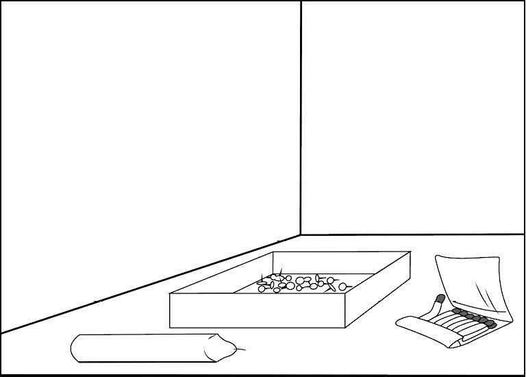Другие считают, что лучше всего зажечь свечу, расплавить кончик и приклеить ее к стене. Идея грандиозная, но… не получается. В конечном итоге, минут эдак через 5–10, большинство участников находят решение, которое вы здесь видите».