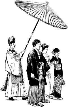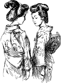 Период Мэйдзи (1868–1912 гг.)После более двухсот лет изоляции от остального мира Япония начинает активно налаживать политические и торговые связи с западными странами, перенимает их достижения и опыт. Из путешествий японская знать привозит с собой не только впечатления, но и новые тенденции моды. С их легкой руки меняется стиль в одежде, прическах, макияже. Более красивыми начинают считать овальные лица, заостренные носы, глаза округлой формы. Мода рисовать неестественно маленькие губы постепенно исчезает. Дамы высшего света облачаются в европейские платья, шляпы или носят прически в викторианском стиле, комбинируя их с традиционным кимоно.