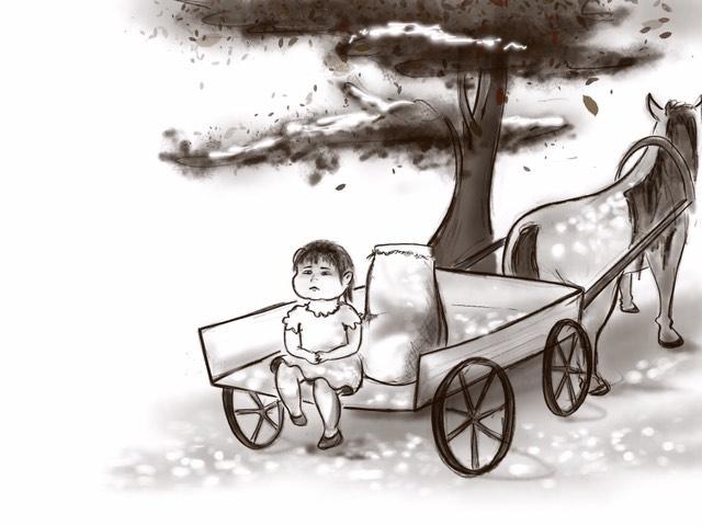 На телеге сидели Папа, Мама, Лана и одна из её старших сестёр. Сестры Ланы все были старшие, потому что Лана была самая маленькая.
