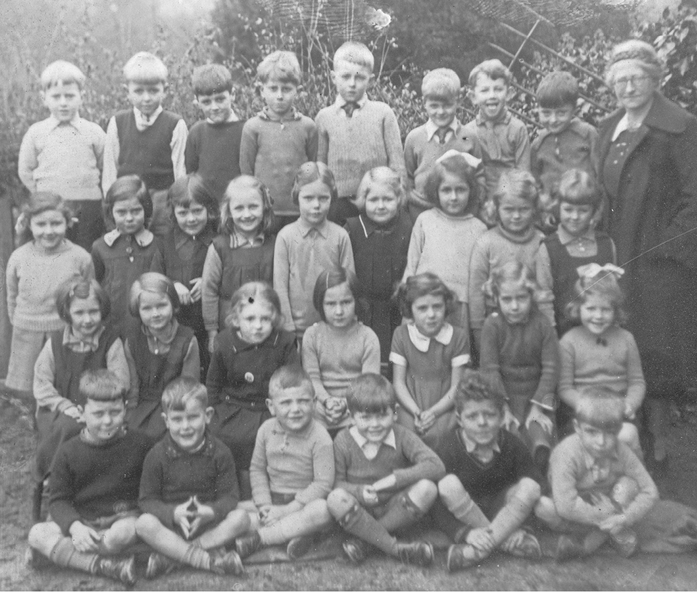 The Infants. I am in the back row, two along from Miss Fletcher, and Sheila is at the end on the right of the second row from the front (© the author)