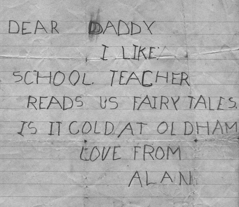 If I lay on my back I could see two things. One was a round window near the ceiling made of different-coloured glass which had patterns I could turn into dragons. The other was an old-fashioned framed picture of a mother talking to her children. My mother had taught me big letters before I started school, so I could read what was underneath the picture. It said: