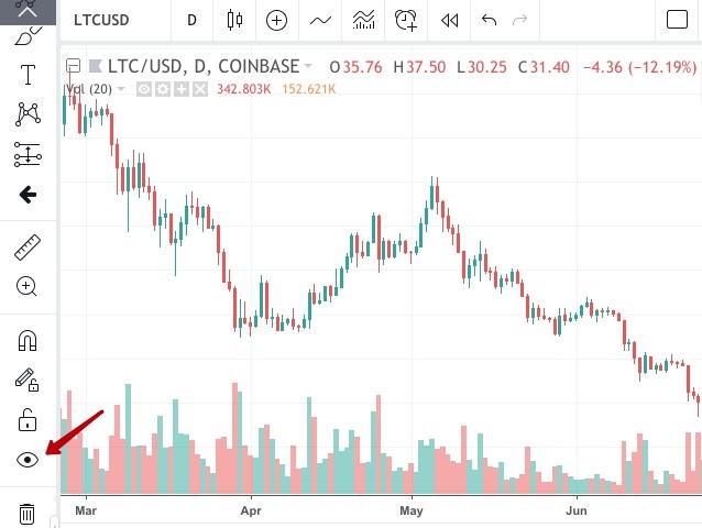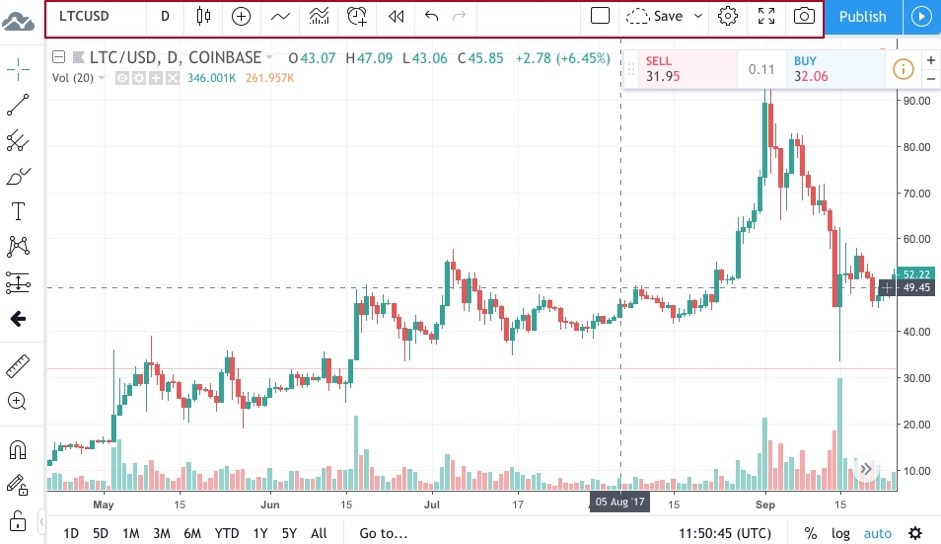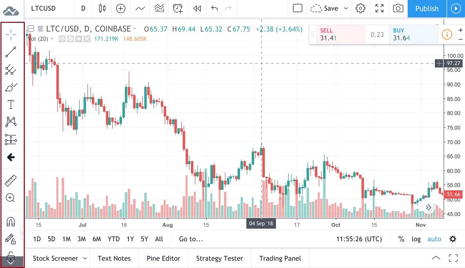 为了切换到此平台上的图表,我们单击主页上的图表按钮。现在考虑图表上方的顶部面板。我们将从左向右移动。