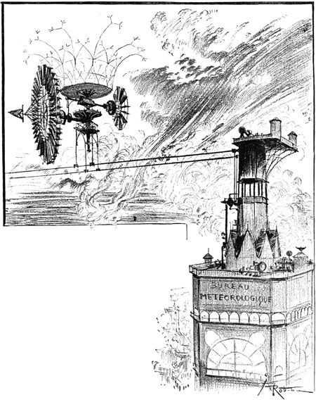 Упорядочив времена года, их распределили также более выгодным образом. С помощью электрических приборов для улавливания дождевых туч получилась возможность по произволу управлять их движениями. Ливни, грозящие помешать уборке хлебов, перехватываются на пути и отводятся туда, где земледелие нуждается во влаге, чтоб напоить жаждущие нивы.