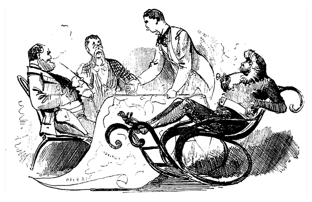 я только что в течение четверти часа беседовал с генералом Фарандулем, наводящим ужас командиром обезьян. Это еще совсем молодой человек, чье лицо, однако, несет на себе печать гениальности. Благодаря уж и не знаю каким средствам ему удалось обучить и дисциплинировать целую армию обезьян, беззаветно ему преданных.