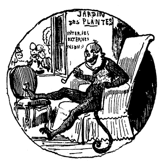 Во избежание новых печалей для своего правителя и друга Мандибюль распорядился сфотографировать наименее одаренного природой из всех воинов-обезьян армейского корпуса и тайком отослал эту фотографию в Париж в качестве снимка желающего жениться монарха. Предместье Сен-Жермен содрогнулось от ужаса. Несколько отчаявшихся девушек удалились в монастыри, в то время как лишь одна-единственная застенчивая мадемуазель пятидесяти трех лет и одиннадцати месяцев от роду, чья родословная восходила как минимум к королю Дагоберу, из чувства долга отказалась снять свою кандидатуру.