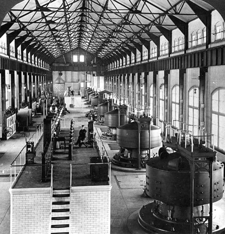 Внутренний вид гидроэлектростанции на Ниагаре, действующей по принципу системы многофазных переменных токов Теслы