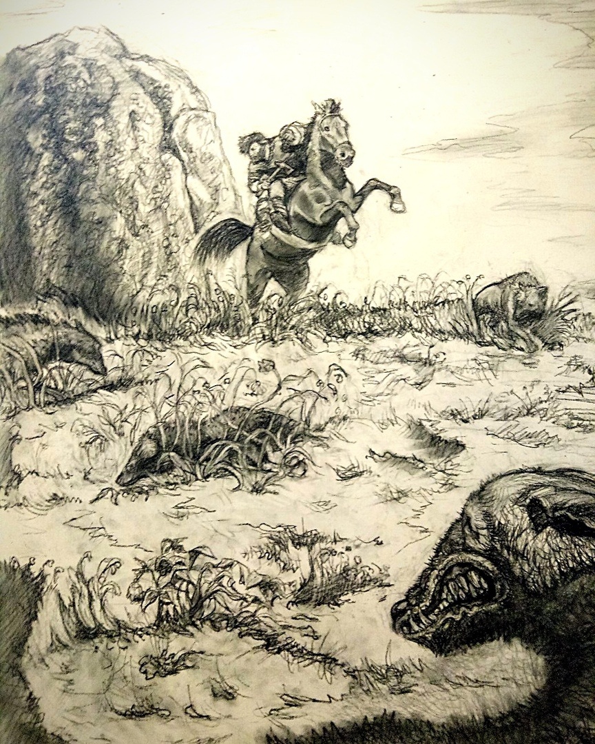 Увидев всадника, собаки прижали уши, опустили черные морды к самой земле и двинулись на человека.